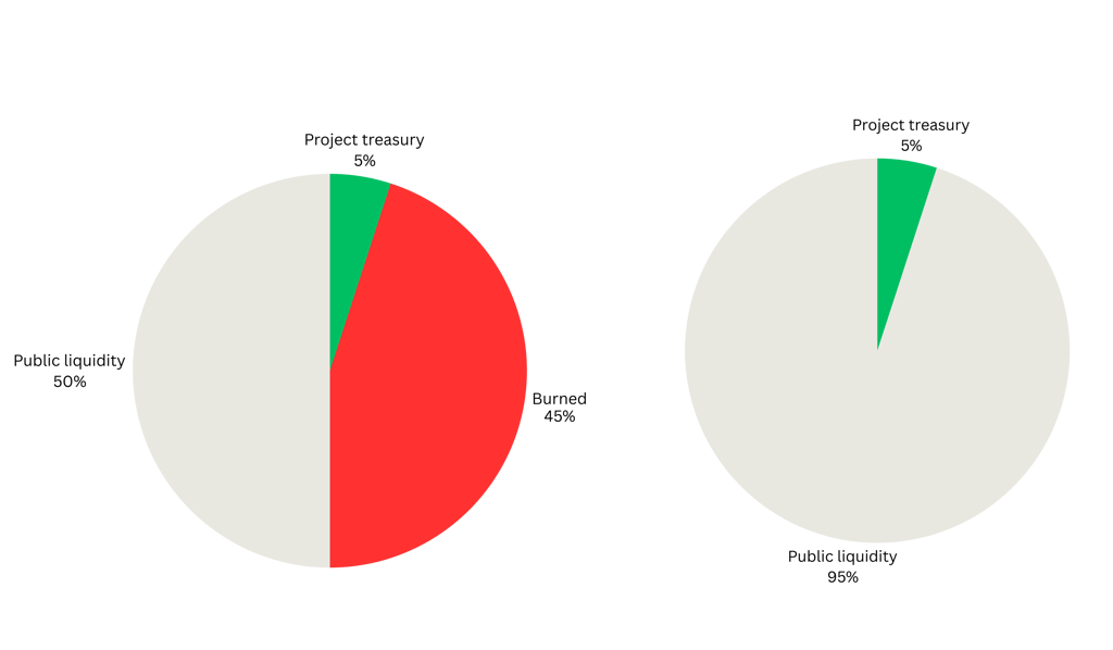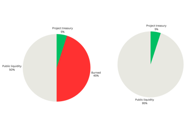 After the burn, 95% of the total supply is available for trading, and 5% is allocated to project development and marketing.